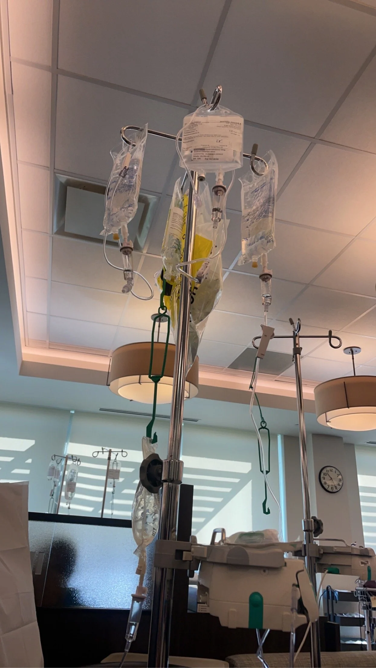 The "button" that is placed on my stomach at the end of chemo and administers drugs in 24 hrs.
